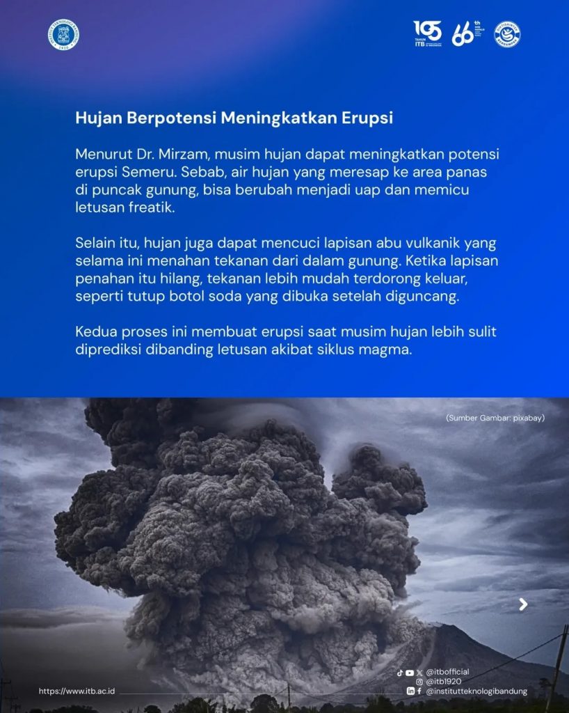 Aktivitas Gunung Semeru meningkat belakangan ini. Ternyata, faktor cuaca punya peran besar!