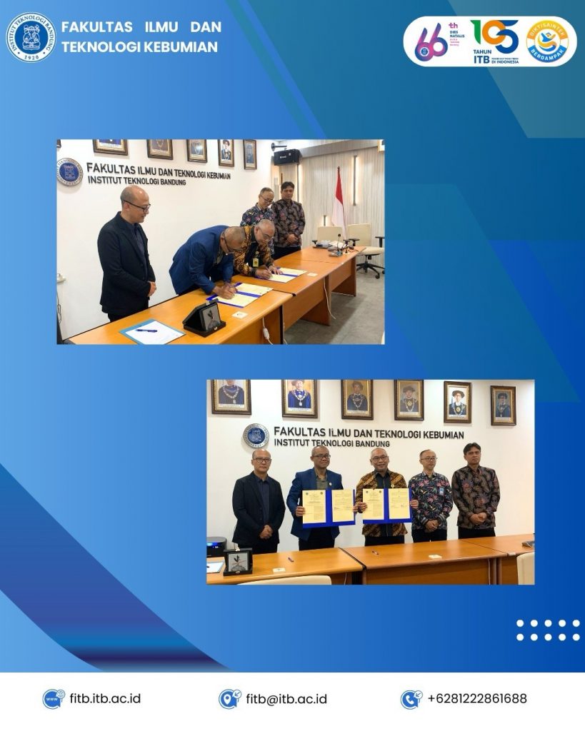 Fakultas Ilmu dan Teknologi Kebumian (FITB) ITB melakukan penandatanganan Perjanjian Kerja Sama dengan Kantor Pertanahan Kabupaten Sumedang pada Senin, 29 Desember 2025 di Ruang Rapat Fakultas. Kerja sama tersebut merupakan bagian dari komitmen FITB ITB dalam mendukung peningkatan kualitas sumber daya manusia di bidang pertanahan dan tata ruang serta peningkatan kualitas dan pemutakhiran data spasial bidang pertanahan dan tata ruang berupa penambahan cakupan peta dasar pertanahan di Kabupaten Sumedang.